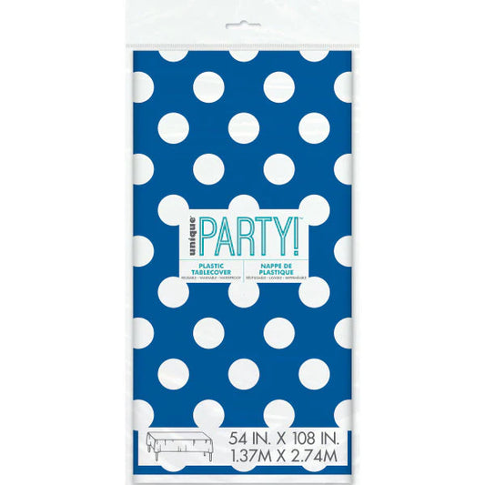 Rectangle Plastic Table Cover 54" x 108" | Blue Polka Dot