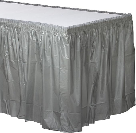 Plastic Table Skirt - 29"x 168" | Shiny Silver